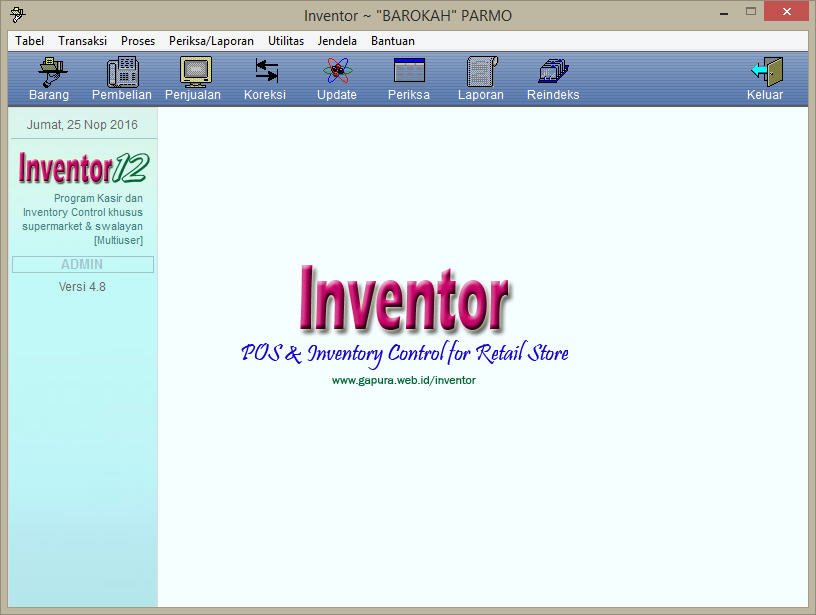 INVENTOR adalah aplikasi untuk toko swalayan atau minimarket dengan banyak kasir (multi-user), dilengkapi dengan manajemen persediaan (inventory control).