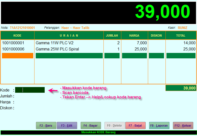 - Multi-user (banyak kasir + user lain) yang menggunakan database yang sama.