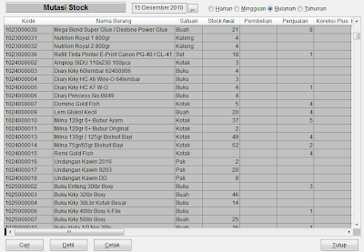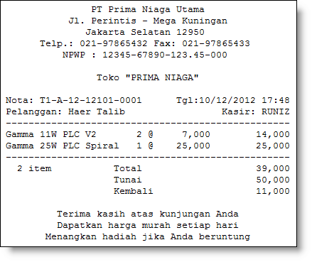 - Cetak struk penjualan pada printer mini (thermal/dot-matrix), cetak laporan pada printer A4.